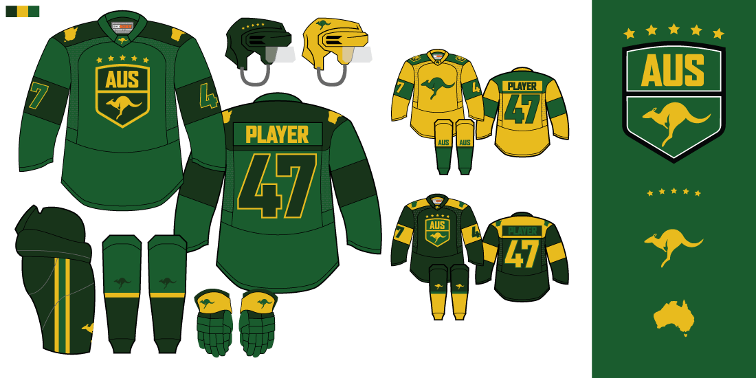 I have had the privilege of being the National Skating & Skills Coach for Ice Hockey Australia. These were some concepts for a new look to the national uniforms.