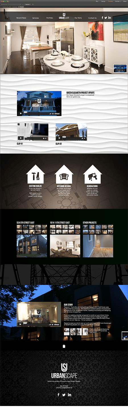 Urbanscape was a client that I took on that needed a brand overhaul. They create beautiful modern homes but their overall brand identity was dated. The website was old and generic, opposite of the modern and unique work that they created. I gave their brand identity a modern facelift, created a sleek and modern website to match their brand and shot various videos showcasing their work and process.